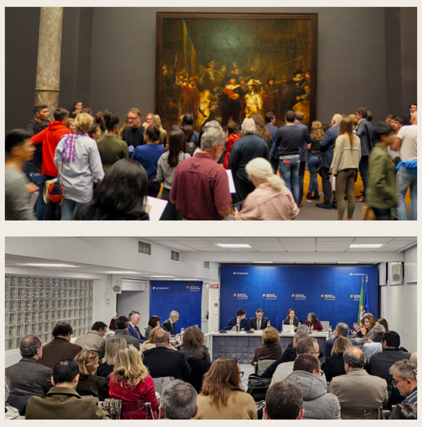 Ao observarmos a imagem da reunião ministerial em espelho com o público que contempla a obra de Rembrandt, a correlação é fatal. O MECI converteu os representantes e, por consequência, a classe, em meros visitantes de museu. Tal como o público observa a milícia de 1642 sem poder alterar o traço ou a ordem de marcha, os docentes foram relegados ao papel de meros observadores de uma reforma que já está “encaixilhada”. Esta é a estética da submissão: enquanto os “oficiais” da Avenida 5 de Outubro ocupam o lugar privilegiado de comando, a classe assiste à distância, imobilizada por uma “paz social” que é, na verdade, uma paralisia sensorial.